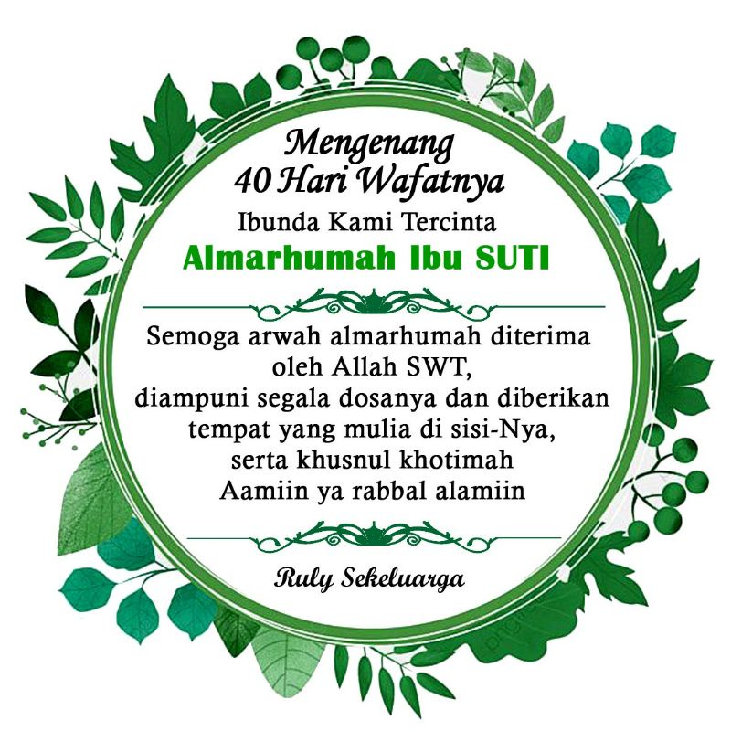 Mengenang 100 hari meninggalnya ibu, mertua, nenek, dan cicit kami. Undangan ini dapat digunakan untuk . Yuk belajar 308+ kartu ucapan 100 hari orang meninggal. Contoh kartu ucapan memperingati 1000 hari orang meninggal posted by wirand kartu ucapan august 26 1985 1105 . Tahlilan merupakan pembacaan serangkaian ayat al quran dan dzikir yang pahalanya ditujukan kepada orang yang telah meninggal. Mengenang genap hari meninggalnya suami bapak kami yang tercinta. Kartu ucapan yang kami bagikan adalah dengan. Download ucapan di kotak nasi 40 hari word. Sebagai manusia yang masih diberi kesempatan untuk hidup, sudah seharusnya selalu mendoakan orang yang sudah meninggal agar diberi tempat . Ucapan duka cita bisa ditunjukkan pada keluarga yang ditinggalkan. Ucapan mengenang 40 hari kematian. Pada video ini saya membagikan tutorial cara membuat kartu ucapan 100 hari orang meninggal untuk ditempel dikotak nasi saat acara . Ucapan 100 hari orang meninggal kotak nasi doa islamic quotes kata kata .